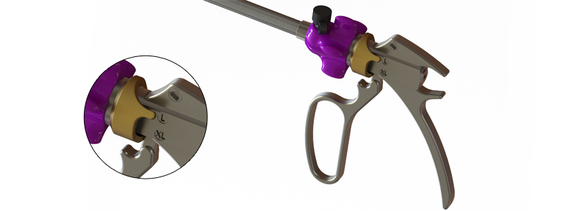 El cirujano puede seleccionar fácilmente el tamaño del clip necesario moviendo la palanca. Gracias a este concepto, no solo se reduce el número de aplicadores de clips utilizados en el hospital, sino también el impacto ambiental negativo asociado con la limpieza, desinfección y esterilización de los aplicadores de clips.